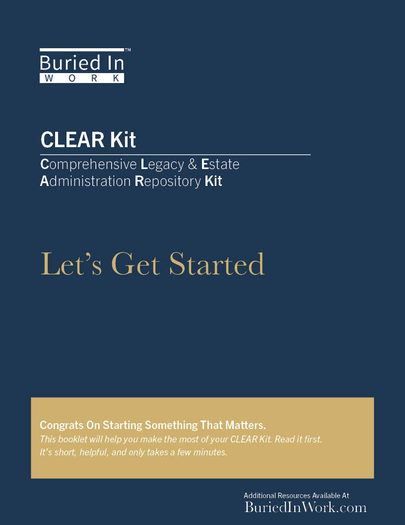 The CLEAR Kit brings your essential information together in one place with a structure that mirrors the way professionals organize estates. It helps your family focus on care, not searches.