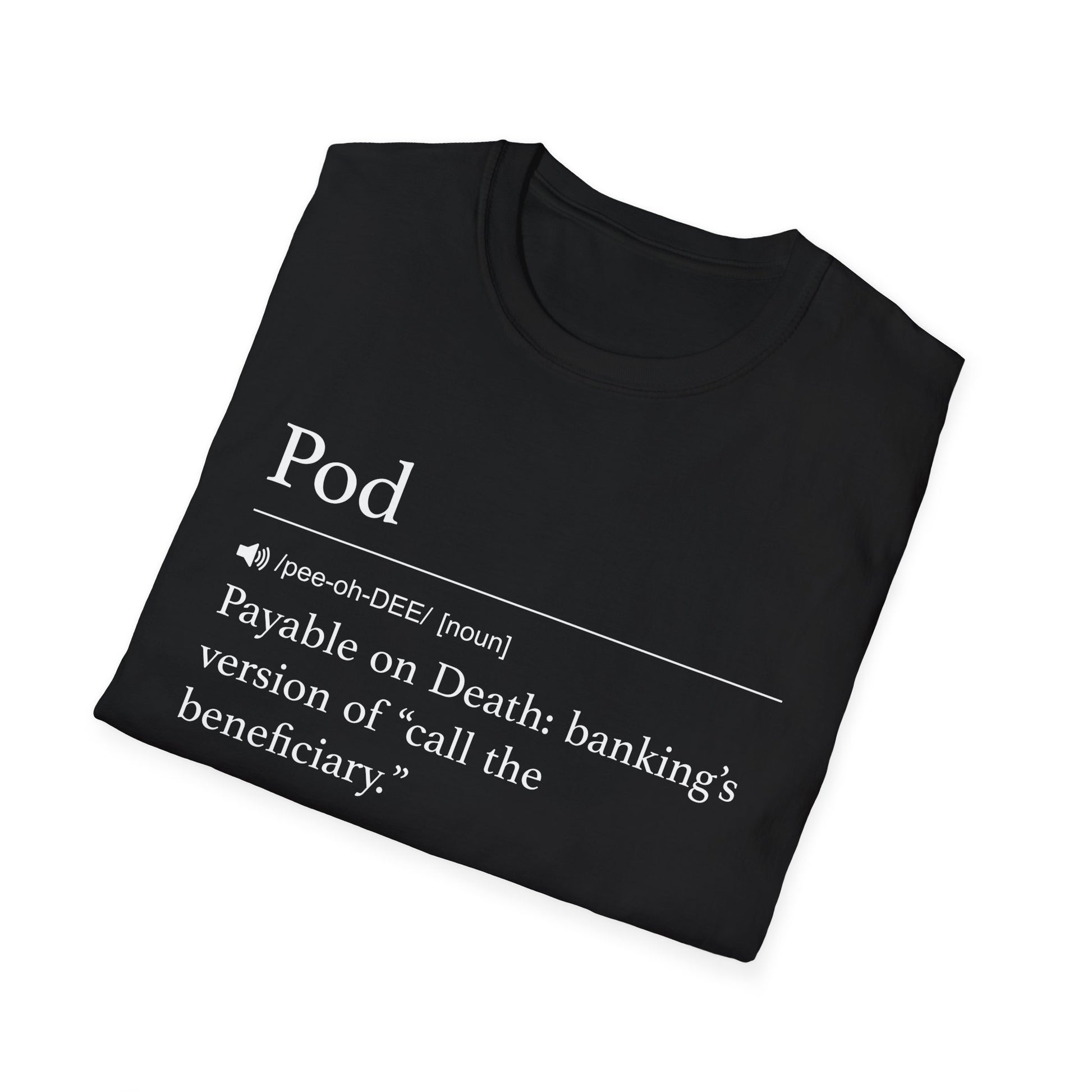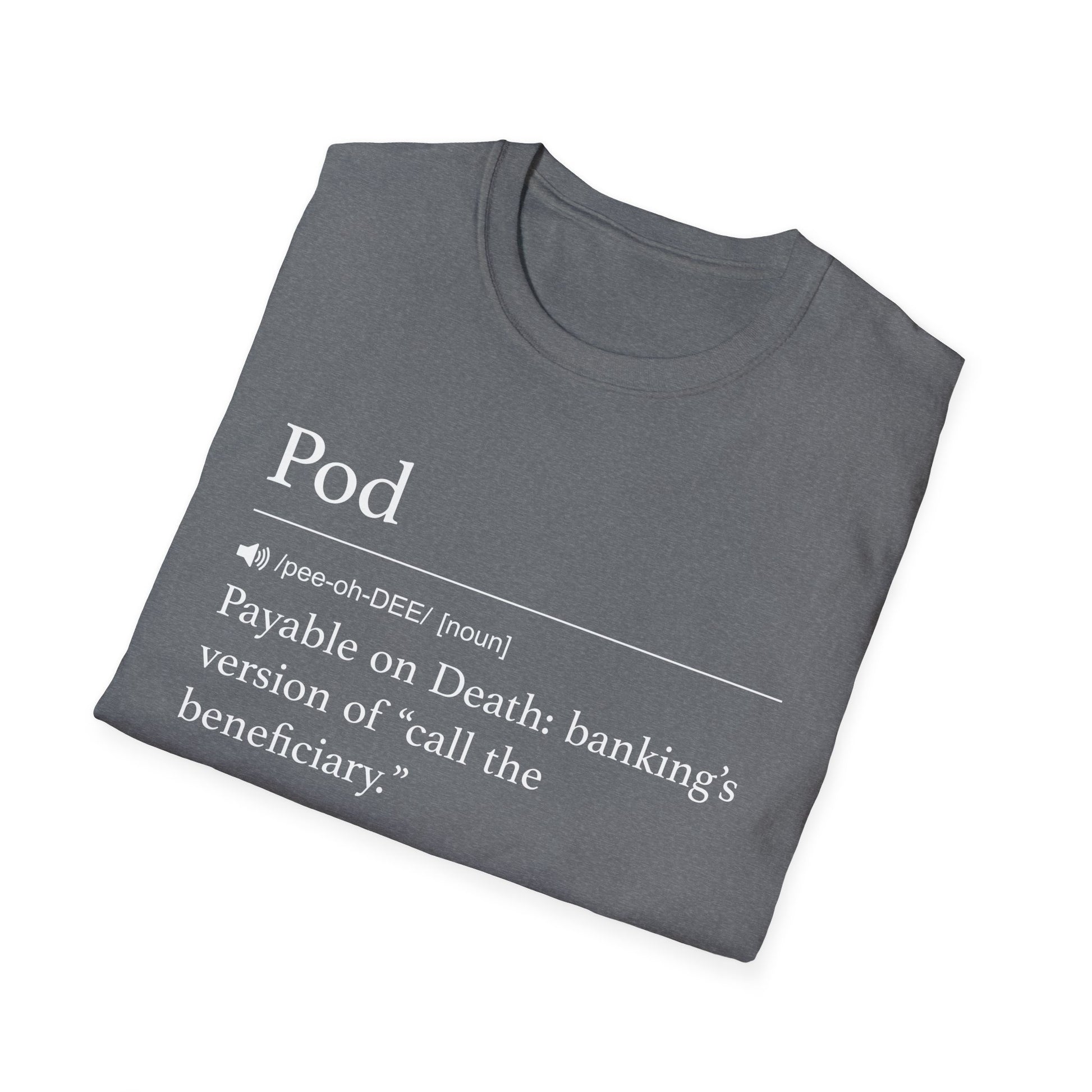 POD: Payable on Death, banking’s version of “call the beneficiary.” A modern estate planning shortcut explained with dry wit. Clean and cleverly specific.